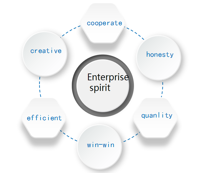 Enterprise spirit: efficient, pragmatic, innovative, honest, quality, efficient, cooperation, win-win Business